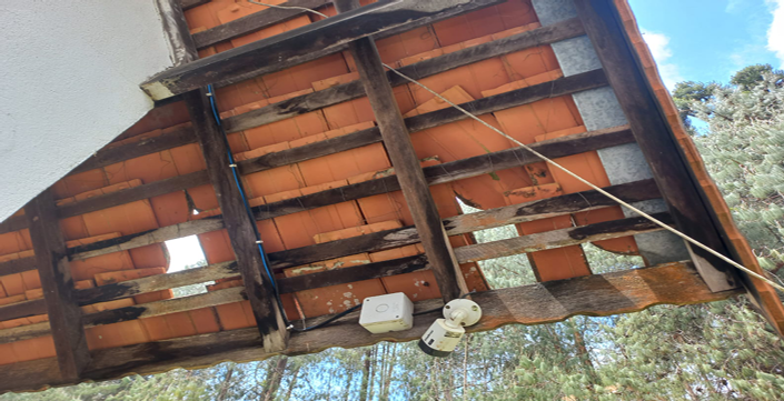 Reparo completo da cobertura, com substituição das telhas danificadas.