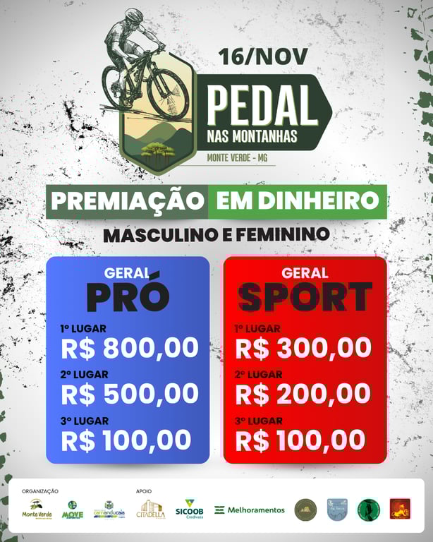 Com largada marcada para às 7h, o pedal terá três percursos: o Pro, com 60 km para os atletas mais experientes, o Sport, com 40 km para quem busca testar seus limites, e o Turismo, com 35 km em meio à beleza natural de Monte Verde.